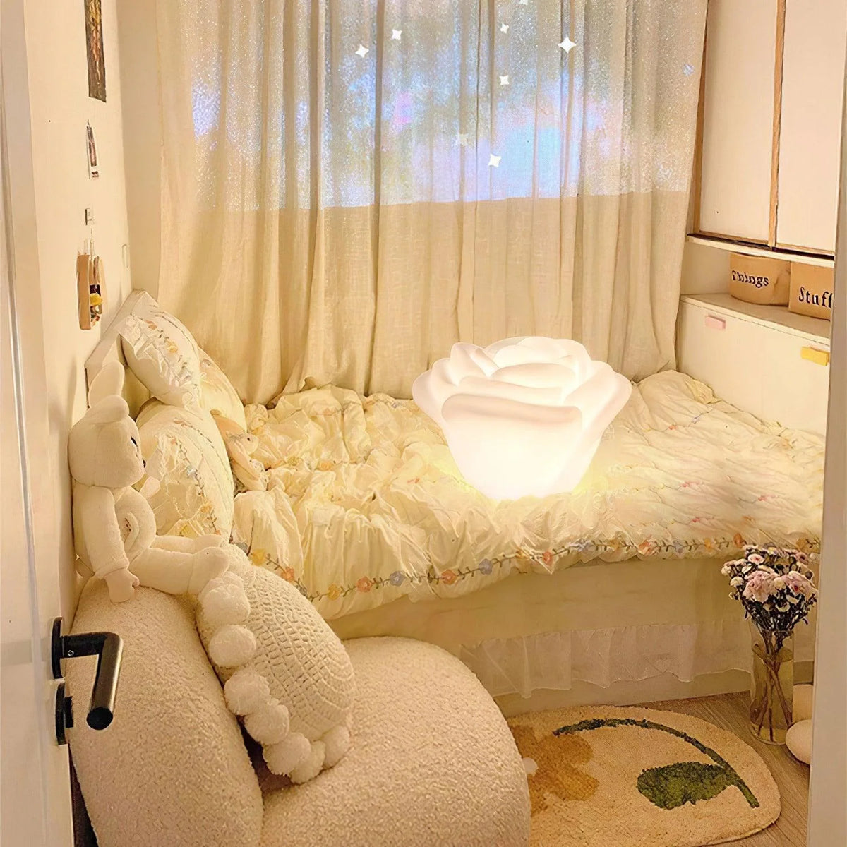 Illuminate your home with the elegant Rose Table Lamp. The delicate rose design adds a touch of sophistication to any room, while the warm light provides a cozy and inviting atmosphere. Perfect for adding a romantic touch to your bedroom or as a statement piece in your living room.